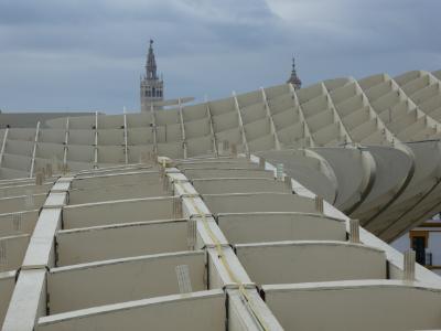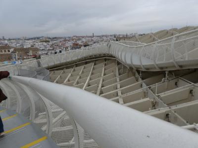 Zondag gingen we over de Guadalquivir naar La Cartuja. La Cartuja was in oorsprong een mannenklooster. In de 19e eeuw werd het door de monniken verlaten en werd er een keramiekfabriek gesticht. In 1992 werd het klooster t.g.v. de wereldtentoonstelling gerestaureerd. Nu is het een centrum voor moderne kust. Dus dat was genieten. Maandag bezochten de Metropol Parasol, ofwel de Setas de Sevilla (de paddestoelen van Sevilla). Bovenop een mooi uitzicht over de stad. Al met al heel bijzonder. |